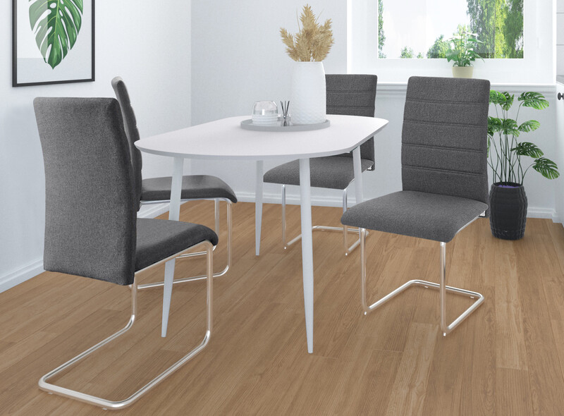 4er-Set Freischwinger Esszimmerstühle DOJAN aus Webstoff mit chromfarbenem Gestell. Erhältlich in weiteren Farben und Set-Größen.