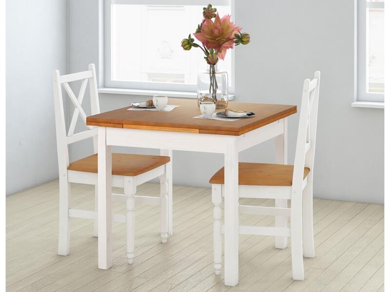 Esstisch MADGDA mit Auszugsfunktion in weiß/honig, 80 cm