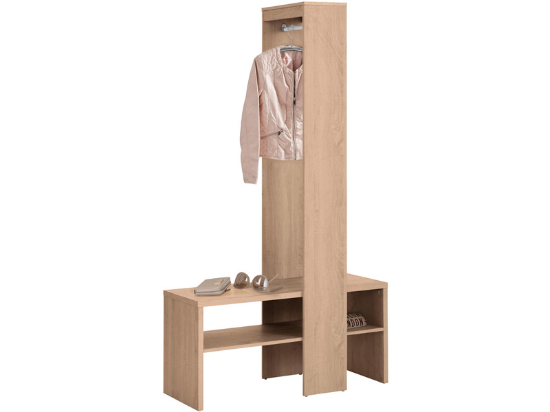 Praktischer Garderobenschrank HUGO mit Sitzbank aus pflegeleichter Spanplatte mit schöner Holzoptik im platzsparenden Design. Erhältlich in 2 Farben.