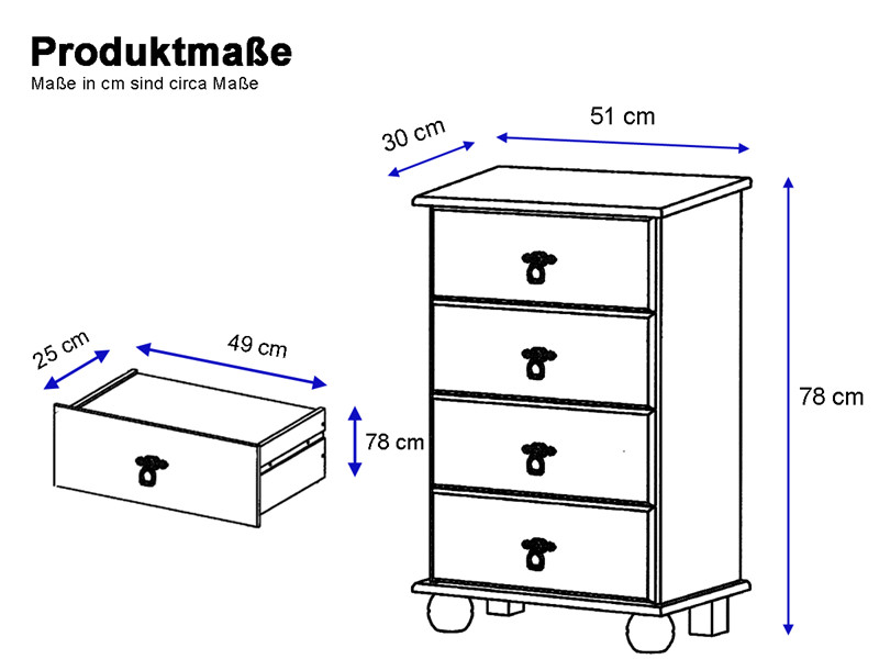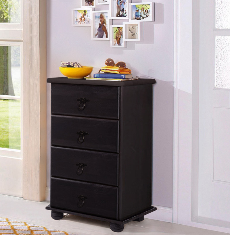 Schubladenkommode FOTINA mit 4 Schubladen aus Kiefernholz massiv im traditionellen Landhausstil. Erhältlich in weiteren Farben und Größen.