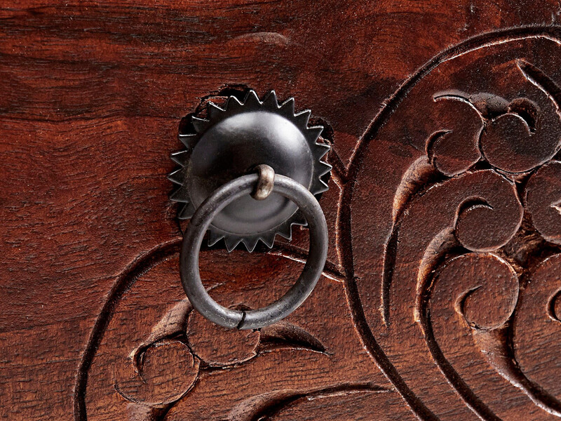 Schubladenfronten mit Schnitzereien und Hammerschlagtechnik